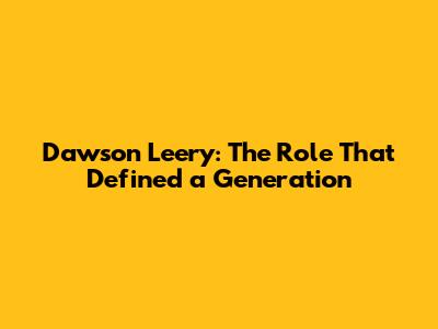 Dawson Leery: The Role That Defined a Generation