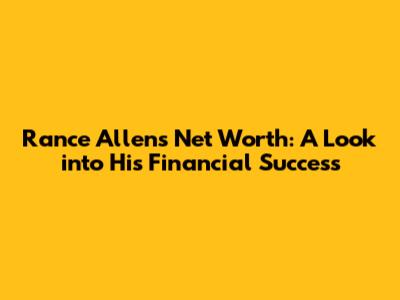 Rance Allen's Net Worth: A Look into His Financial Success